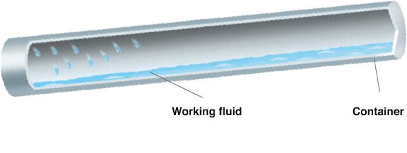 流體被封閉在密閉容器中。如果熱管的一側加熱的話,流體不斷重複蒸發和冷凝,並且熱量可以有效地從一側傳遞到另一側。